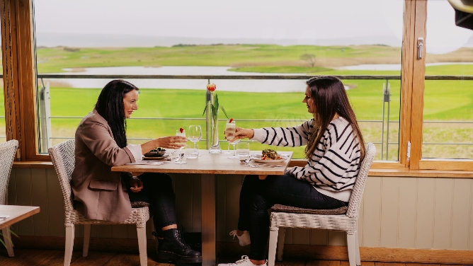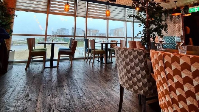 Perched on the first floor of Machynys Golf Club’s clubhouse, Fredricks offers stunning panoramic views of the Nicklaus golf course, Carmarthenshire Bay, and the Gower coastline beyond. Whether you’re enjoying a drink on the wrap-around sun deck or dining inside beside the fire, this brasserie combines Welsh and Mediterranean flavours in inspired ways. The alfresco balcony dining is a must when the weather’s fine — the perfect place to relax and soak it all in.