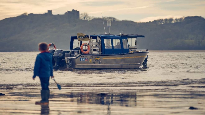 For a unique experience along the coast, families can take a ride on the Glansteffan Ferry, which crosses the River Tywi between Ferryside and Llansteffan. This ferry—specially designed to cope with the estuary’s shifting tides—offers not just a means of transport, but a memorable journey in itself. It was even named one of the “World’s Most Spectacular Ferry Crossings” by The Independent. Friendly local crew members provide informative commentary along the way, sharing stories about the area’s maritime history, wildlife, and coastal communities. The trip offers beautiful views of the estuary and is an engaging way for families to experience the beauty of Carmarthenshire’s shoreline from the water.
