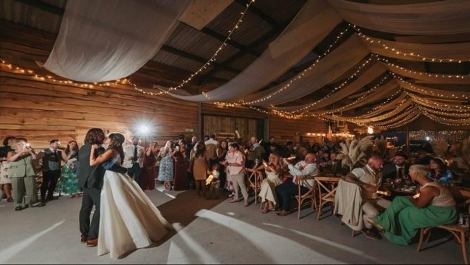 Newly opened in 2025 near Llandovery and the Bannau Brycheiniog National Park (Brecon Beacons), Green Grove Barns is a beautifully restored venue that perfectly captures the county’s renowned rural charm with a blend of traditional character and contemporary style. Lovingly restored barns with exposed beams and elegant interiors sit surrounded by hills, woodlands, and seasonal colour offering a peaceful, exclusive-use retreat for intimate weddings.